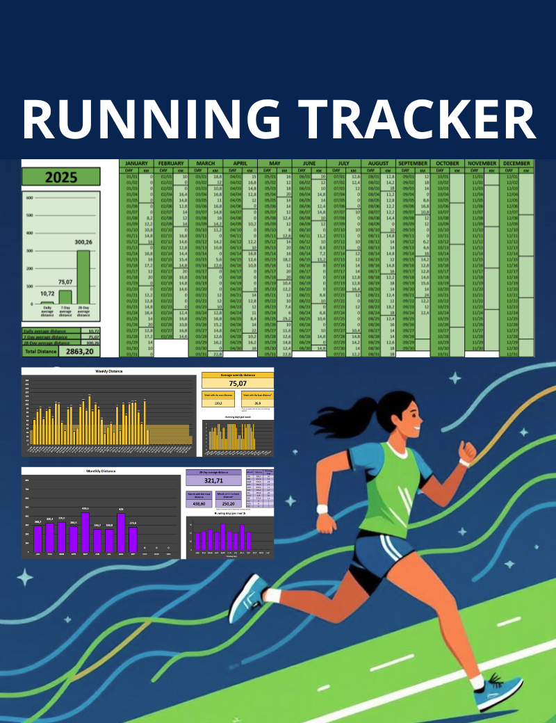Whether you’re training for your first 10K, aiming for a marathon, or simply building a consistent running habit, this tracker keeps you accountable and motivated.